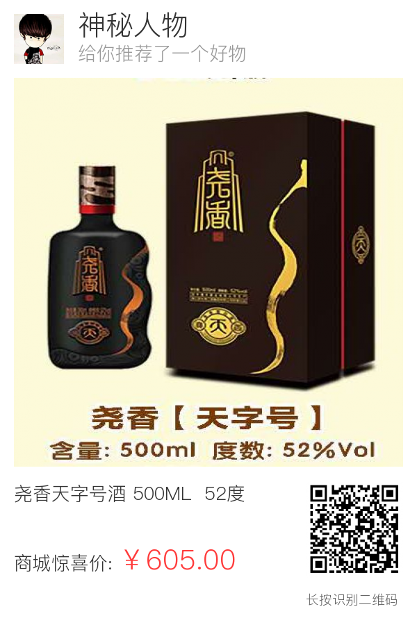 尧香天字号酒 500ML 52度